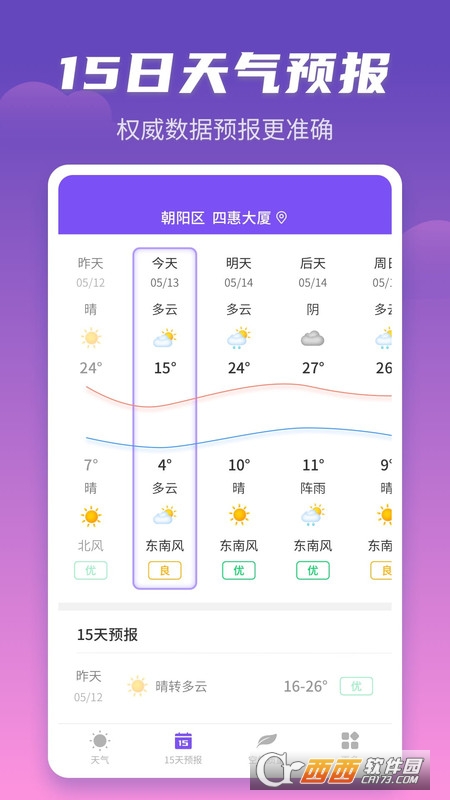 精准的天气数据在这里也是可以让你为出行提前做好准备,随时随地让你来关注到