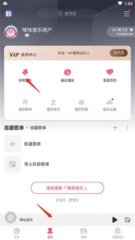 1、打开软件,点击底端的“我的”选项,然后点击“本地音乐”选项。
