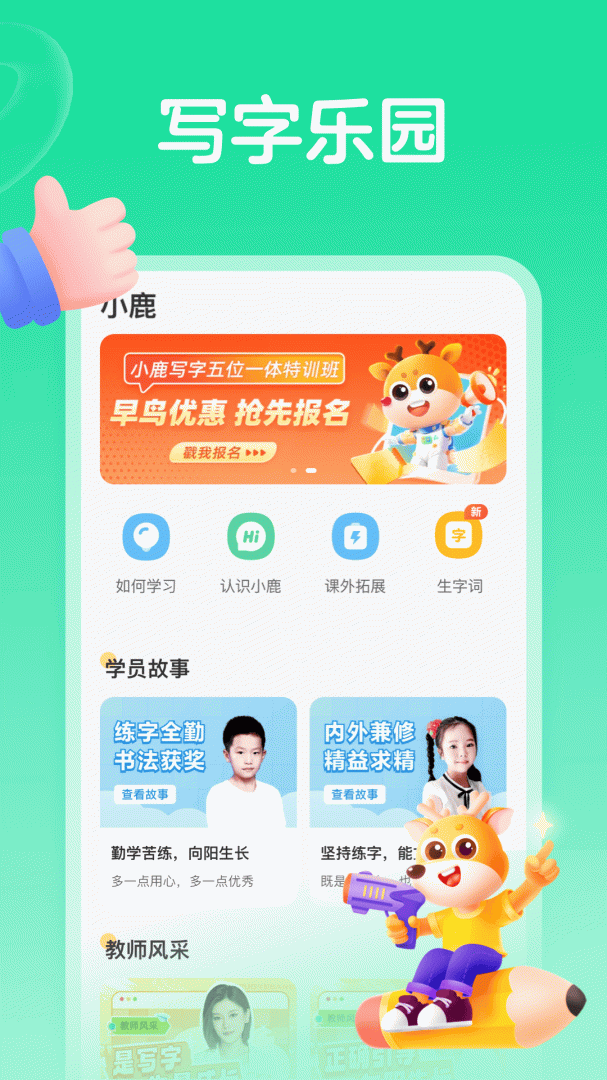 小鹿写字app是作业帮旗下的写字练字软件,小鹿写字app由教研团队精心打磨,值得家长信赖;有效解决书写难点,告别写字丑、慢、乱;学习氛围浓厚,让孩子爱上写字;1对1点评服务,科学又有效;学习情况及时,专属老师闪电回复,在线答疑解惑。