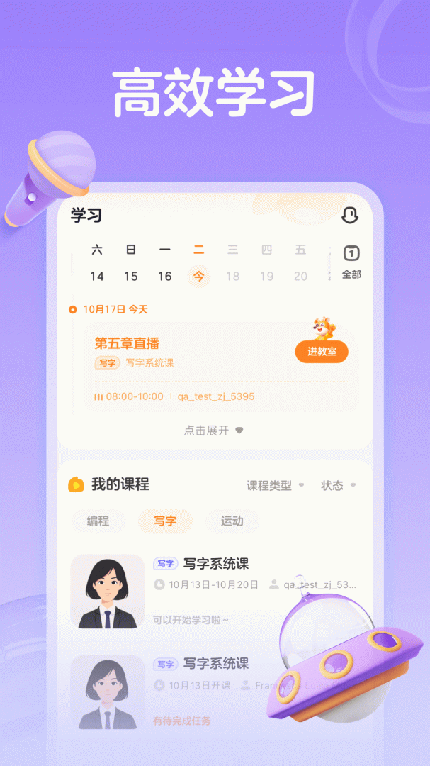 小鹿写字采用录播课的形式,孩子随时可登录app进行课程学习,课程由专业书法老师讲授,在具备专业性的同时兼具趣味性,让孩子爱上练字,真正做到随时随地,想学就学!