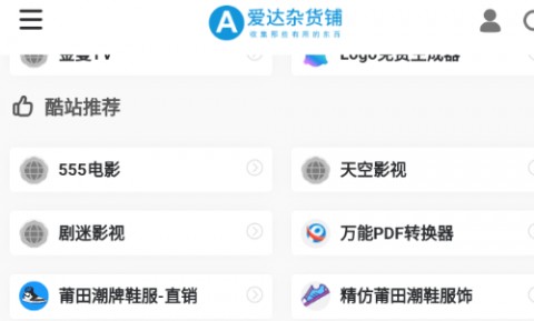 爱达杂货铺APP是一款网站导航APP,软件上收录了全网各种实用的网址,而且分类非常详细,用户可以体验站点一键直达,软件的搜索能力很强,包含了影视、文件、小说、网盘资源等等。