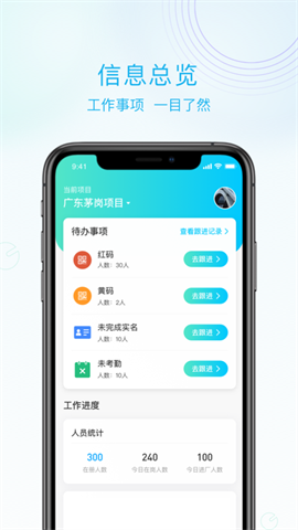 1.【考勤管理】提供管理人员更换作业人员的人脸照片功能,解决因采集人脸照片质量差而无法识别打卡问题; 2.【考勤管理】提供管理人员一键测试考勤机网络连接功能,协助现场及时排除考勤机网络故障问题; 3.【考勤管理】提供一键实时获取考勤数据功能,随时随地掌握工班出勤情况; 4.【安全教育码】首页增加安全教育码准入功能,没持有绿码的作业人员不具备上岗作业资格,引导作业人员按要求完成培训任务; 5.【用户体验】手机兼容性优化;