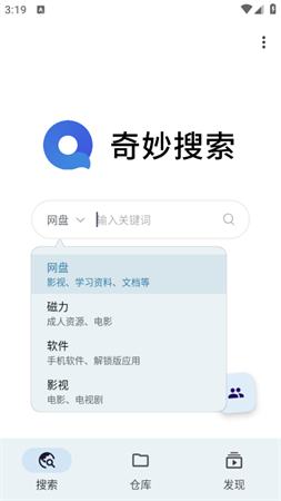 奇妙搜索网页版app最新地址,各位用户们现在可以通过奇妙搜索手机端来直接进入网页版本的奇妙搜索。最新地址域名更新,超多的软件仓库分享。大家可以在app中来找到自己想要的软件分类,直接在线下载,还能使用网盘搜索功能来找到更多的软件、视频、小说等等,不收费、无广告,大家快来下载吧!