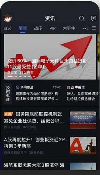 2、接着我们可以看看【资讯】栏目,在这里,有很多股票资讯,用户可以根据自己的需求进行选择阅读,遇到好的文章资讯还可以分享给好友哦
