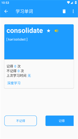 *记忆持久度:你可以清楚地看到已学单词的熟知度情况。