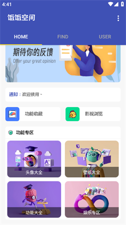 饭饭空间app是一款多功能的工具箱应用,这里有非常多实用的工具可以免费使用。每日早报、头像壁纸大全、游戏大全、影视大全等等,一款软件中包含了超多的功能,而且都可以免费使用,给大家的日常生活带来了超多的便利与欢乐。