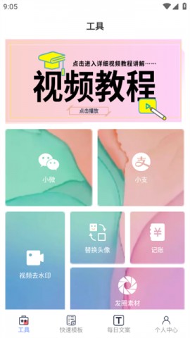 3.在工具中,用户还可以点击进入打开详细视频的教程讲解。迄今为止,软件已经为两万多位微商用户进行服务,使用小歪微商新版本app可以快速的制作发圈素材,深受各个微商团队的喜爱与欢迎。