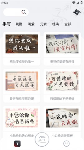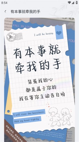 您可以在此随时改变您的字体,并且使用方便。本软件中的各种字体均可一按即用,让使用者在本软件中体验到各种不同的字体,如隶书,楷书等。您还可以与您的好友共享您喜爱的字体。“手写体”、“花式”、“二元”、“可爱”、“清新”......这些都是受欢迎的文字。