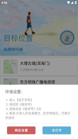 基于手机地理位置的模拟工具,通过对位置的模拟,改变手机当前所在位置的经纬度信息,可以让手机轻松穿越到任何位置。摩尼定位app不需要root,仅需要打开开发者模式,然后开启[允许模拟位置]即可使用。