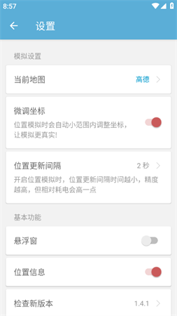 摩尼定位1.40版集成新版的高德地图,从地图中用户任意选择位置点击即可开始模拟用户可以在软件的设置功能中开启模拟位置时,位置更新间隔长短,时间越短位置获取频率越高,精度也就越高相对的,它的耗电量也就更高一些
