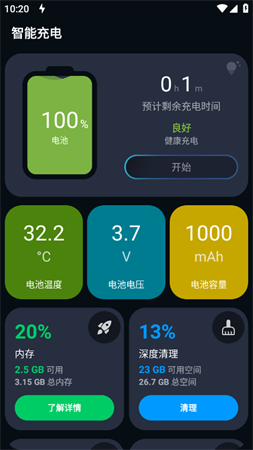 智能充电app能够让大家时刻查看手机电池电量和充电时间。通过软件来检查手机电池健康情况,预估电池的使用寿命。多种充电方式可以让大家自由的选择,更安全快速的充电模式,让手机使用寿命更久,再也不用担心电池出现问题了。