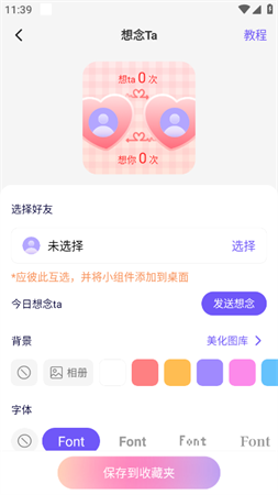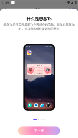 想念Ta组件实时显示Ta今天想你的次数。当你也想念Ta时,可以点击组件发送你的想念