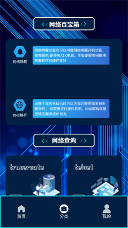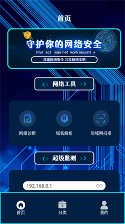 手机网卫提供了一款功能强大的手机网管软件,还提供了一个网络诊断、网络百宝箱,保护您的网络,还有许多的网络小程序供您使用,超级监控您的网络,高效率的连线管理,更是千家万户管理网管的必备法宝!
