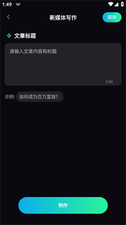 1、通过输入一定的关键词,文案宝APP就可以自动生成与之相关的文章。