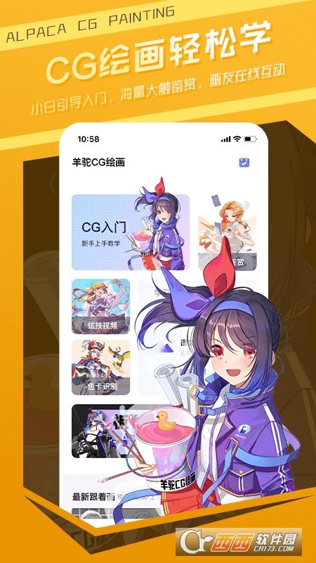 羊驼CG绘画app,带你用一块手绘板打开二次元绘画新世界,还有海量原画、插画、板绘教程和素材与您分享!在这里,我们给绘画爱好者提供一个创作、交流合一的平台