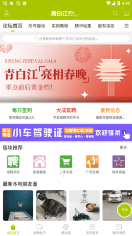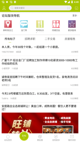 青白江论坛APP是一款功能很全面的服务平台,这里的服务包含衣食住行以及吃喝玩乐等等,并且还有本地的新闻消息更新,丰富的板块分类,用户能在线进行交流,服务版块能解决很多事情。