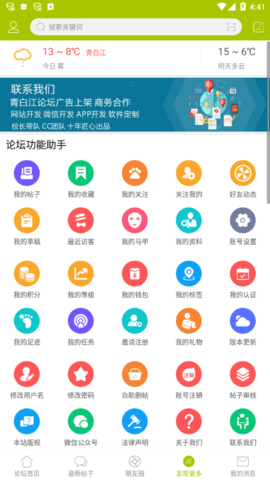 青白江论坛APP怎么删贴1、打开青白江论坛app,在发现更多界面中点击自助删帖