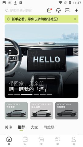 阿维塔APP作为旗下的在线平台,能够让所有用户了解最新的资讯,以及各种汽车的产品型号与价位,有需要办理服务的用户在线即可进行咨询或办理,而且车主用户还能在线进行沟通交流,分享各种经验与技巧等!