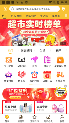返利淘联盟APP是一款网上购物达人的省钱神器,每日会为用户们精心挑选各种各样来自淘宝、天猫、京东、拼多多等各大平台上的优质商品,并有限量隐藏优惠券,大额优惠券领券立减,低到超值,更有九块九包邮还返利的商品,同时在这里有各种返利优惠券,让你淘到优质实惠好商品。