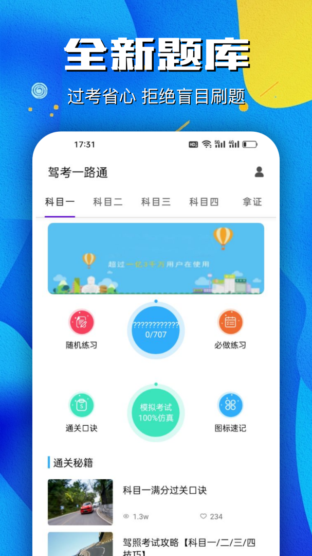 《驾考一路通》是一款专为学习驾照考试而设计的手机软件,用户可以通过该app学习交规知识、模拟考试题库、查看考试成绩等,全方位提升考试通过率,软件内容包括科目一到科目四的理论考试题目和答案解析,让用户系统掌握考试重点,还提供最新的交规变化和违章信息,帮助用户了解最新交通法规,应用操作简单,界面友好,适合驾考新手和复习者使用,驾考一路通为用户提供了便捷高效的学习工具,助力顺利通过驾照考试。