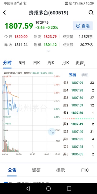 2、然后就可以打开相应的公司详情页面了,里面有公司的实时股票信息,并且还分多维度查询浏览