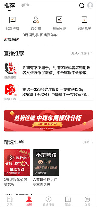 2、在投顾模块这里可以找投顾、快速问股、看视频教学等。