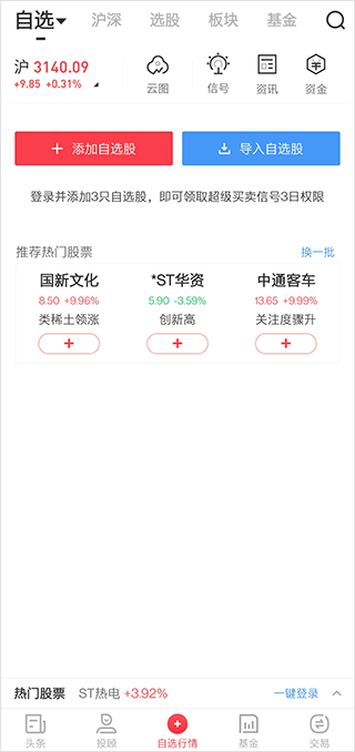3、在行情模块可以快速查看实时的行情,添加自选股。