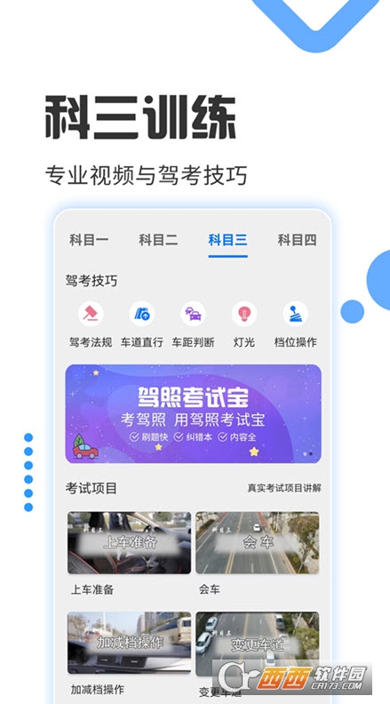 2、全程陪伴您学车考驾照,包含驾考中科目一、科目二、科目三、科目四的全部内容,是您贴心的驾考