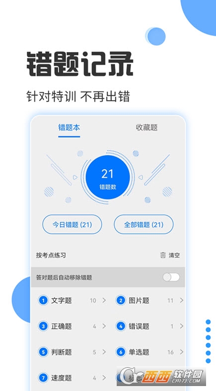 2.我的错题:驾考答题过程中自动记录错题,事后可以对错题强化练习。