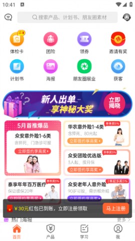 向日葵保险app安卓免费版版本为大家提供了非常方便的保险推广功能,这里有众多的保险产品可供用户们选择。保险种类更加齐全而且推广费更高,下载安装注册以后就能加入我们,了解到更多的保险产品。