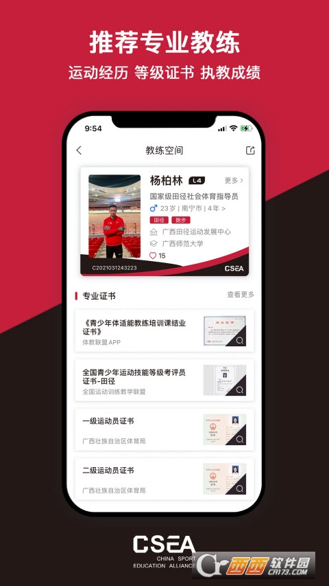 为教练员提供个人注册与推广、培训报名与考试、职称评定与查询、等级申请与查询、培训讲师选聘、最新科技医疗信息推送等服务;
