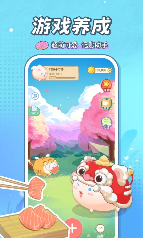 1、记账的同时还可以饲养自己的小团团,每天陪伴用户记账。
