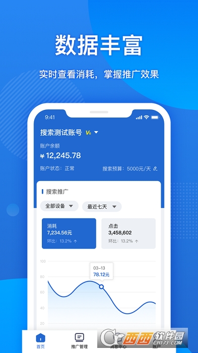 1.提供丰富数据:首页可查看账户实时数据、历史投放数据;各管理层级可查看物料详细投放数据,协助您快速掌握投放效果。