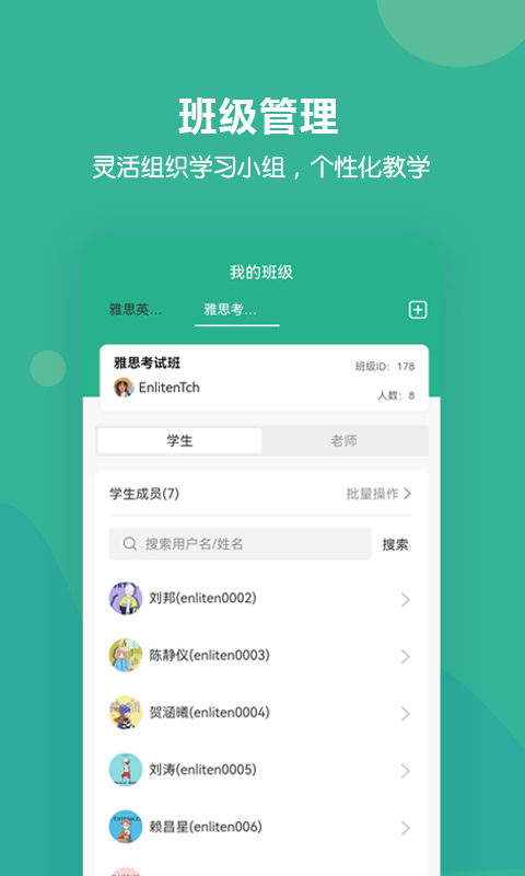 1、通过班级管理根据学生情况灵活组织班级,随时能高效教学