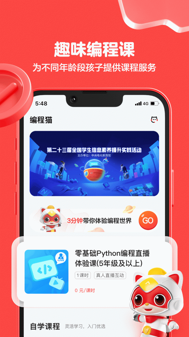 2、编程猫下载,一款专业优质内容丰富的青少年在线编程学习服务平台,来编程猫可以体验课程购买课程,展示作品等,有需要就来下载