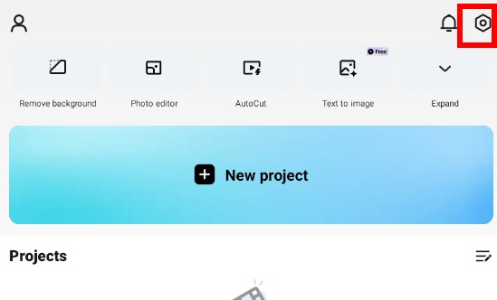 1.打开CapCut软件,进入首页,右上角设置。