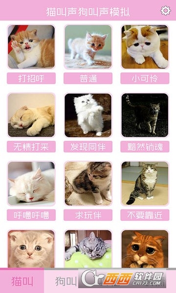 猫叫声狗叫声模拟手机版是一款好玩的动物模拟叫声的软件。用户可以在这里找到数种猫咪的叫声。猫咪不同的状态所发出的喵咪叫声也不尽相同。在这里体验云吸动物的乐趣吧!