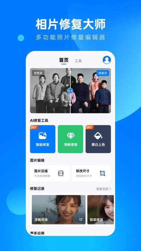 1. 内置智能算法,可针对老照片进行精细化修复,还原画面细节,提升清晰度。