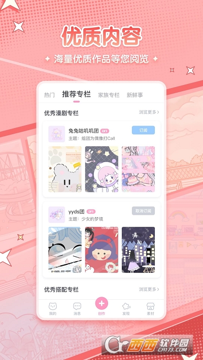 漫剧少女app是一款萌系二次元漫剧创作社区,使用起来非常的简单方便,用户们能够在里面学习到许多关于二次元的创作知识等等,而且还有非常优质的创作内容可以借鉴,喜欢的朋友们快来鳄斗163手游网漫剧少女app一起来打造心中的二次元虚拟世界吧.
