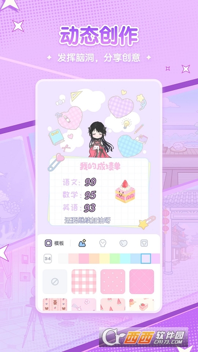 多种创意模板,每天分享一个小故事。可以介绍“我的新同桌”,可以分享“上学路上的趣事”,还可以聊聊“今天的小烦恼”,记录美好,治愈烦恼。