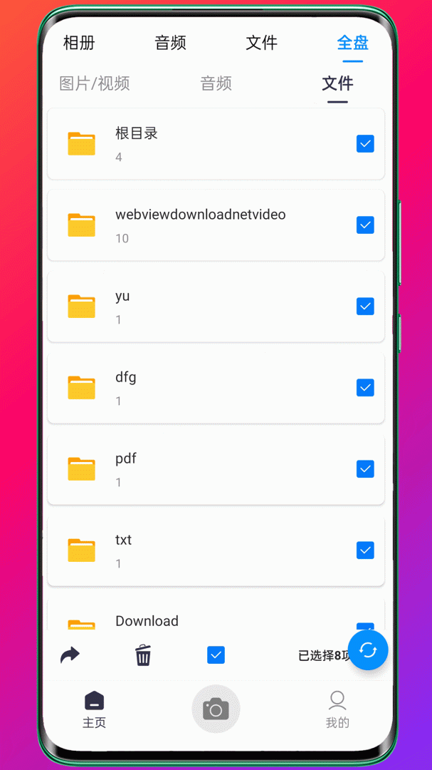 6、多模块330相册有相册、音频、文件、全盘4个模块,全盘可以查看手机所有图片、视频、音频和文件,方便清理手机多余文件