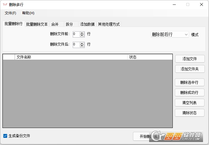 删除多行(DeleteFirstFewLine)是一款多功能文本处理小工具,可以进行拆分文档、修改内容、插入符号等操作,界面简洁,操作简单,快速将文本批处理,节省了工作时间,提高了工作效率。