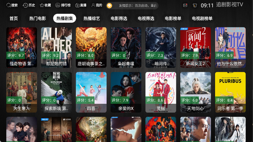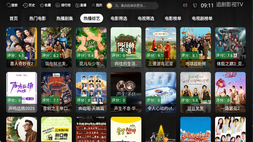 2、来到首页可以看到很多的影视剧集类型,电视剧。电影以及综艺等都有。
