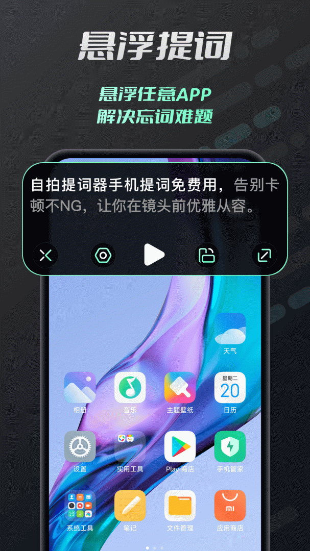 5、可以非常轻松的置顶到相机、短视频应用界面,用户才能轻松的查看台词