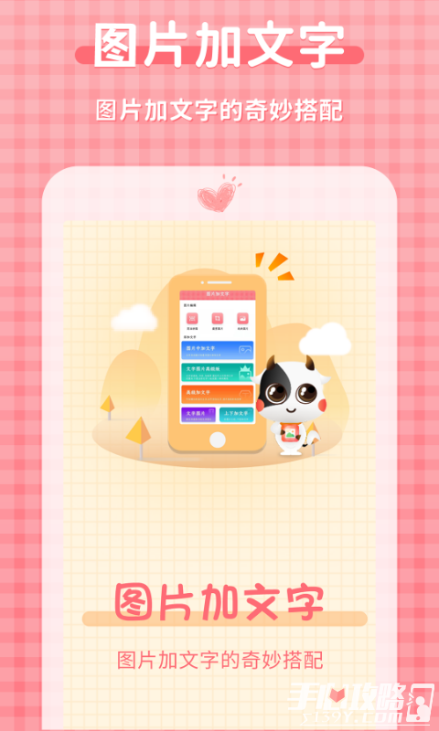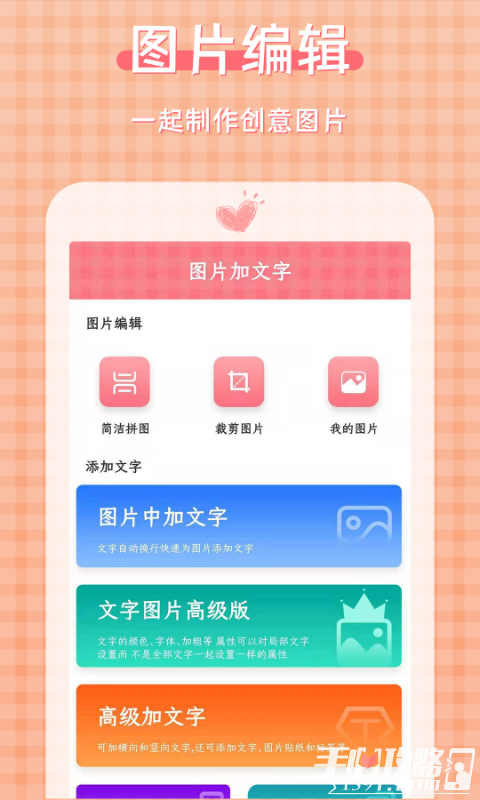 1、图片加文字大师是一款好用的图片编辑软件,图片加文字大师操作简单,可以轻松对图片进行编辑美化,还能轻松添加文字、滤镜素材,图片加文字大师处理图片更简单快捷