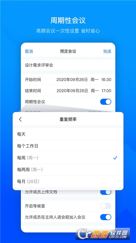 - 界面清爽简洁,一键预约、发起、加入会议;