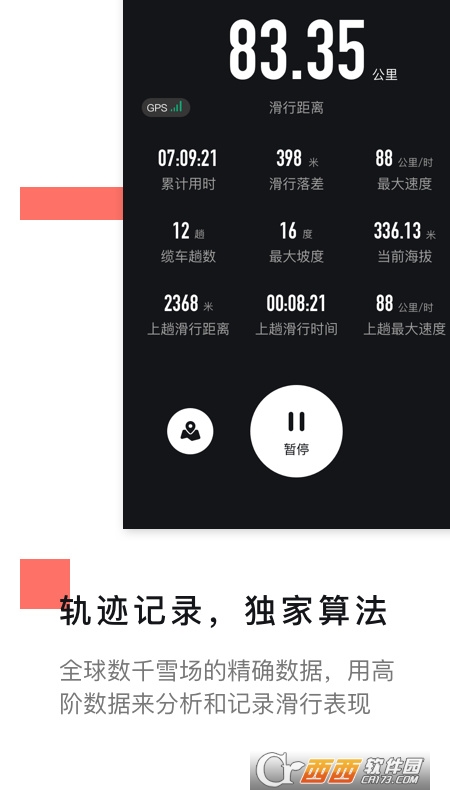 【轨迹记录】记录滑行里程,留下珍贵的滑行档案,是您必不可缺的滑雪助手。