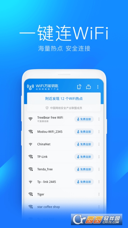 WiFi万能钥匙,海量免费安全wifi热点,无忧一键连接。无论身处何地,只要打开WIFI万能钥匙,点击连接即可放心上网。