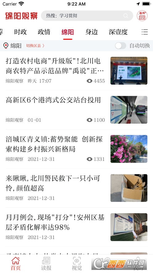 绵阳观察app提供绵阳本地最新最热新闻资讯,包括头条、时政、县市区、热点、社会、人文、视觉、旅游栏目。