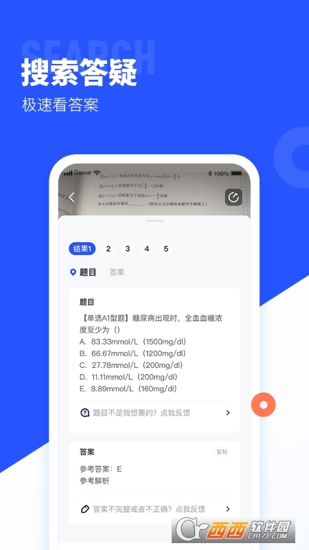 支持拍照搜题、文本搜题、扫码搜书等多种搜索方式,一拍一扫,秒出题目和答案!